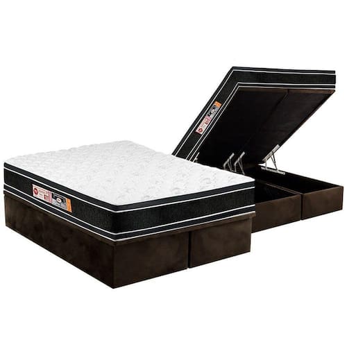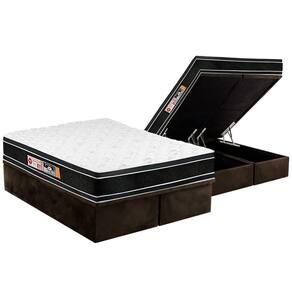 Conjunto Box Baú King: Colchão Espuma Castor D33 Black e White Air Euro Pillow + Base CRC Suede Brown(193x203)