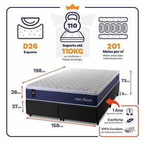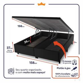 - Altura: 28 cm (colchão) + 37 cm (box baú) + 8 cm (pés) = 73 cm de altura;