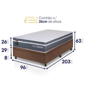 - Altura: 63 cm (colchão) + 8 cm (box) = 71 cm de altura;