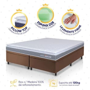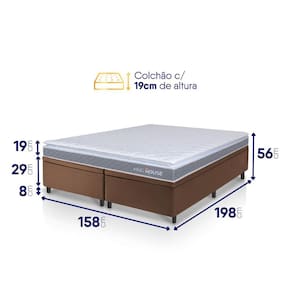 - Altura: 56 cm (colchão) + 8 cm (box) = 64 cm de altura;