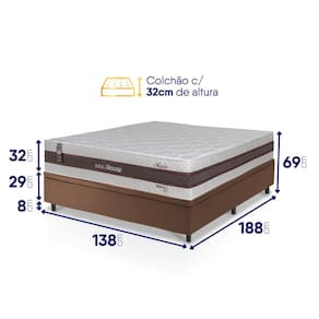 - Altura: 69 cm (colchão) + 8 cm (box) = 77 cm de altura;