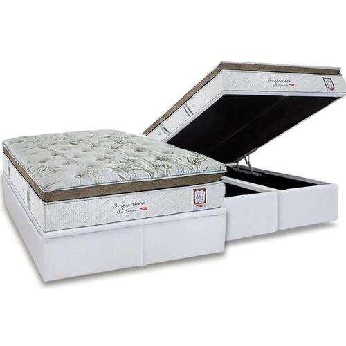 Conjunto Box Baú Queen: Colchão Molas Herval Ensacadas Imperatore Eco Bamboo + Base Crc Linhão White (158x198)