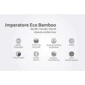 Conjunto Box Baú Queen: Colchão Molas Herval Ensacadas Imperatore Eco Bamboo + Base CRC Linhão White (158x198) Abaixo segue os produtos do KIT: Conjunto Box Baú Queen: Colchão Molas Herval Ensacadas Imperatore Eco Bamboo + Base CRC Linhão White (158x198) Colchão Queen Molas Ensacadas Visco Imperatore Eco Bamboo Euro Pillow (158x198x34) - Herval