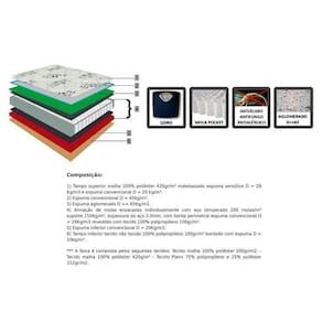 Dimensões(Cm): Comprimento(Profundidade): 198cm x Largura: 158cm x Altura: 33cm Vantagens Extras de Colchão - Ecologicamente Correto - c/ Sistema Polyframe - Manta Acrílica Tipo de Pillow - Pillow Top Europeu Tecido com Tratamento - AntiÁcaro e AntiFungo Tipo de Bordado do Tecido de Revestimento - Matelassê Tipo Tecido de Forração Revestimento - Poliéster - Malha de Alta Qualidade Tipo de Forração do Revestimento Inferior - Antiderrapante Tipo de Tecido de Revestimento da Faixa Lateral - Malha Importada Modo de Utilização - One Side Camadas Interna do Estofamento de Espuma - Alta Qualidade - AG - D45 Tipo de Mola - Ensacadas MasterPocket Nível de Firmeza do Colchão - Extra Firme Peso Máximo Suportado - 150 kg Certificados de Qualidade - Qualidade Aprovada Nossa Avaliação - Qualidade Muito Boa Tempo de Garantia - 12 meses Opções de Camas Box para usar com o seu ##nomesimples## - Cama Box Base Universal e Cama Box Baú Nobuck Café/Black/Cinza/Bege