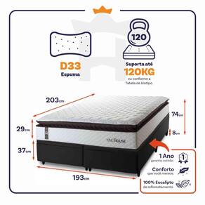 O Colchão San Diego é feito com os mais nobres materiais em sua composição, ele conta com espuma D33. Por ser mais macio, o colchão traz benefícios e ajuda no alinhamento da coluna. O colchão King House acomoda melhor o contorno do corpo, dispondo de forma correta quadris e ombros, expulsando as dores e problemas de coluna.