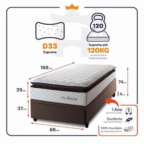 Medidas do Colchão: 88x188x29 cm, 96X203x29 cm, 138x188x29 cm, 158x198x29 cm, 193x203x29 cm.