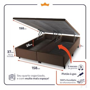 - Altura: 27 cm (colchão) + 37 cm (box baú) + 8 cm (pés) = 72 cm de altura;
