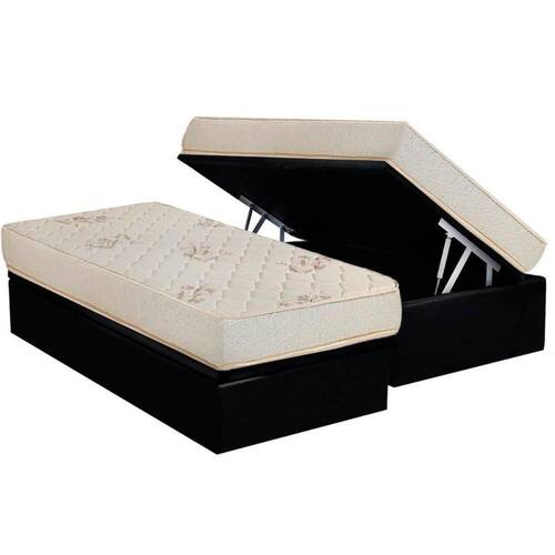 Conjunto Box Baú Solteiro: Colchão Espuma Luckspuma D33 Supreme Floral + Base Crc Suede Black(88x188)