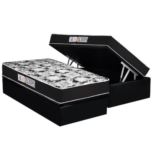 Conjunto Box Baú Solteiro: Colchão Espuma Luckspuma D45 Gran Luck Pro + Base CRC Suede Black(88x188)