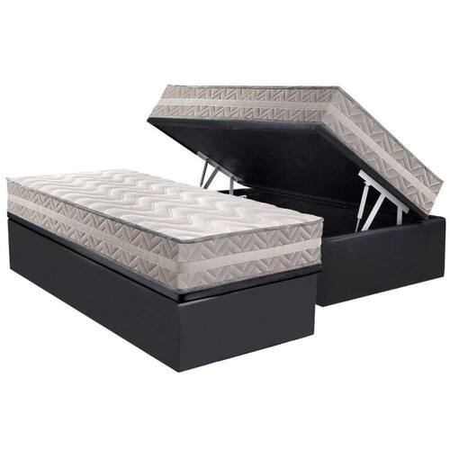 Conjunto Box Baú Solteiro: Colchão Espuma Paropas D28 / Master Prata Double Face 25 + Base Crc Suede Gray (88x188)