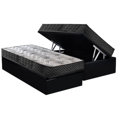 Abaixo segue os produtos do KIT: Conjunto Box Baú Solteiro: Colchão Espuma Paropas D45 Pasquale Wave Black + Base CRC Suede Black (88x188)