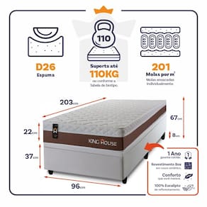 O Colchão Venice é feito com os mais nobres materiais em sua composição, ele conta com espuma D26 e molas ensacadas. Por ser mais macio, o colchão de molas ensacadas individualmente traz benefícios e ajuda no alinhamento da coluna. O colchão King House acomoda melhor o contorno do corpo, dispondo de forma correta quadris e ombros, expulsando as dores e problemas de coluna.