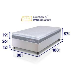 Medidas Colchão + Box: 88x188x57 cm, 96x203x57 cm, 128x188x57 cm, 138x188x57 cm, 158x198x57 cm, 193x203x57 cm.
