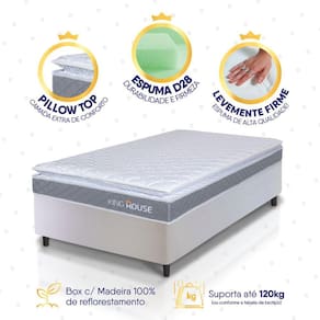 - Altura: 45 cm (colchão) + 12 cm (box) = 57 cm de altura;