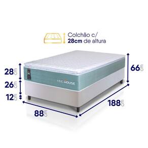 - Altura: 54 cm (colchão) + 12 cm (box) = 66 cm de altura;