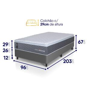 - Altura: 55 cm (colchão) + 12 cm (box) = 67 cm de altura;