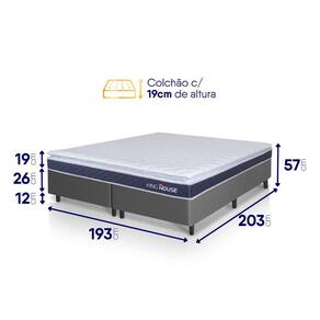 Medidas Colchão + Box: 88x188x57 cm, 96x203x57 cm, 128x188x57 cm, 138x188x57 cm, 158x198x57 cm, 193x203x57 cm.
