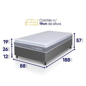 Medidas Colchão + Box: 88x188x57 cm, 96x203x57 cm, 128x188x57 cm, 138x188x57 cm, 158x198x57 cm, 193x203x57 cm.