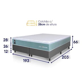 - Altura: 54 cm (colchão) + 12 cm (box) = 66 cm de altura;