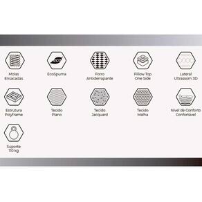 Dimensões(Cm): Comprimento(Profundidade): 203cm x Largura: 193cm x Altura: 28cm Tipo de Colchão - Molas Vantagens Extras de Colchão - Ecologicamente Correto - c/ Sistema Polyframe Tipo de Pillow - Pillow Top Americano Tecido com Tratamento - AntiÁcaro e AntiFungo Tipo de Bordado do Tecido de Revestimento - Contínuo Tipo Tecido de Forração Revestimento - Malha de Alta Qualidade - Jacquard Tipo de Forração do Revestimento Inferior - Antiderrapante Tipo de Tecido de Revestimento da Faixa Lateral - Jacquard - Aerado Cor do Tecido de Revestimento da Faixa Lateral - Clara Cor do Tecido do Tampo - Claro Modo de Utilização - One Side Camadas Interna do Estofamento de Espuma - AG Tipo de Estrutura Ortopédico - AG Tipo de Mola - Ensacadas MasterPocket Nível de Firmeza do Colchão - Macio c/ Firmeza - Macio Peso Máximo Suportado - 110 kg Certificação de Qualidade - Qualidade Aprovada - INMETRO - ISO 9001 Nossa Avaliação - Qualidade Muito Boa Tempo de Garantia - 3 meses - 12 meses Tipo de Conforto - Macio c/ Firmeza