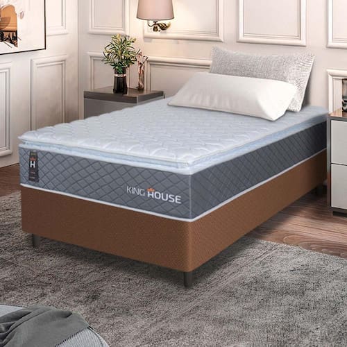 - Altura: 55 cm (colchão) + 12 cm (box) = 67 cm de altura;