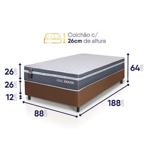 - Altura: 52 cm (colchão) + 12 cm (box) = 64 cm de altura;
