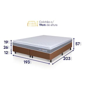 Medidas Colchão + Box: 88x188x57 cm, 96x203x57 cm, 128x188x57 cm, 138x188x57 cm, 158x198x57 cm, 193x203x57 cm.