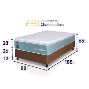 - Altura: 54 cm (colchão) + 12 cm (box) = 66 cm de altura;