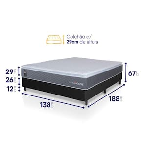- Altura: 55 cm (colchão) + 12 cm (box) = 67 cm de altura;