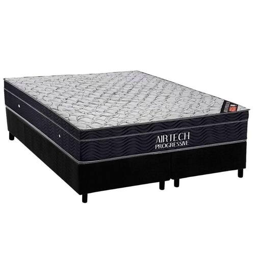 Conjunto Box Queen: Colchão Molas Ortobom Nanolastic Airtech Progressive + Base Crc Suede Black (158x198)