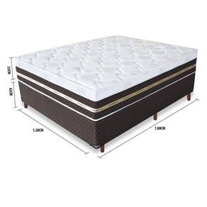 Especificações Espuma: D40 Molas: Sim Tipo de molas: Ensacadas Poliestireno: Sim Tecido: Poliéster Tampo: Malha Possui Euro Pillow Estrutura da caixa box: Madeira de eucalipto Pés: Madeira Escove, aspire e ventile o colchão mensalmente para não bloquear sua ventilação. Fazer rodizio colchão quinzenalmente para que haja um assentamento uniforme das camadas de espuma Suporta até 120 kg cada lado