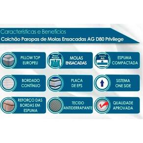 Colchão Solteiro Molas Ensacadas MasterPocket Privilege Euro Pillow (88x188x25) - Paropas