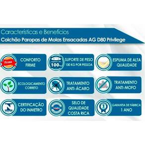 Abaixo segue os produtos do KIT: Conjunto Box Solteiro: Colchão Molas Paropas MasterPocket Ensacadas Privilege + Base CRC Suede Black(88x188x25)