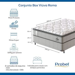 As espumas do Conjunto Box Viúva Roma foram desenvolvidas com a Tecnologia ProMax Probel, que passam por rigorosos testes de qualidade em laboratório e recebem tratamento antiácaro e antifungo.