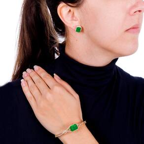 Conjunto Bracelete e Brinco Esmeralda Tamanho 16cm -