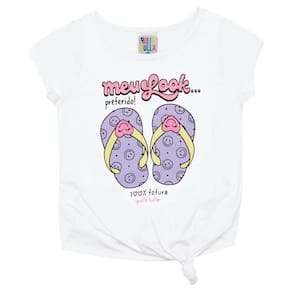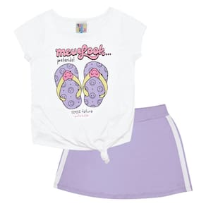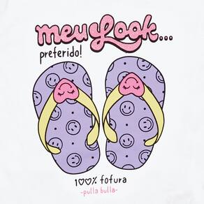 Novo conjuntinho Pulla Bulla perfeito para os dias de Verão, proporcionando conforto e liberdade de movimento para o seu amorzinho, composto por uma Blusa confeccionado em Meia malha na cor Branca com estampa de chinelinhos super fofos com detalhes em glitter e um Short saia confeccionada em Cotton leve na cor Lilás com listras laterais brancas. Perfeito para os dias mais quentes, garantindo todo frescor, charme e fofura para a sua menininha.
