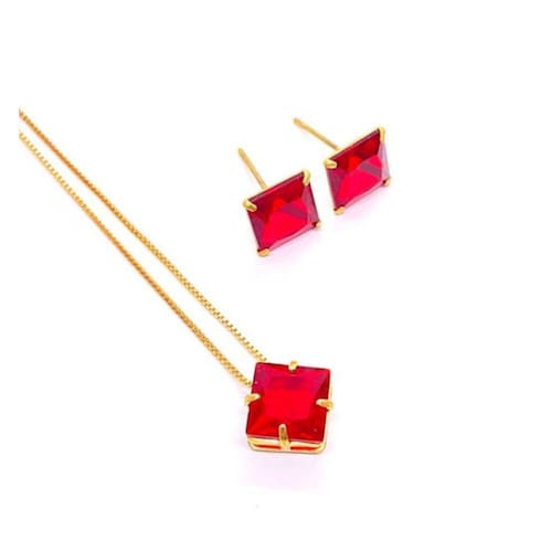 Conjunto Brinco e Colar Carré - Banhado em Ouro 18k - Cor: Vermelho