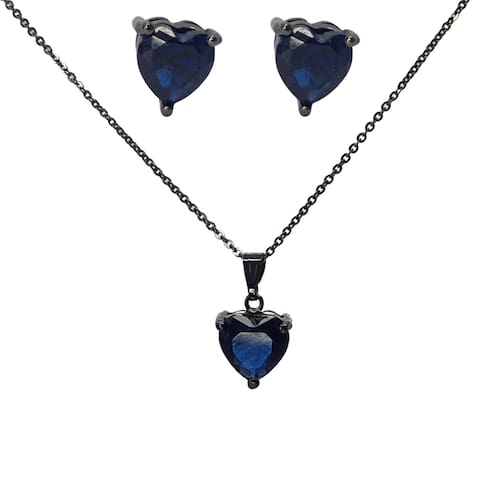 Conjunto Brinco e Colar Coração Cristal Aquamarine - Cor: Ônix Pedra Azul