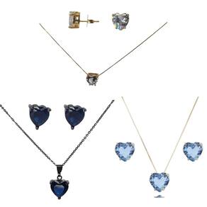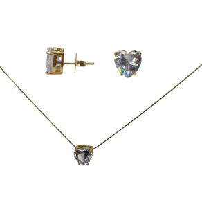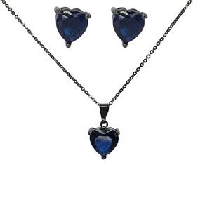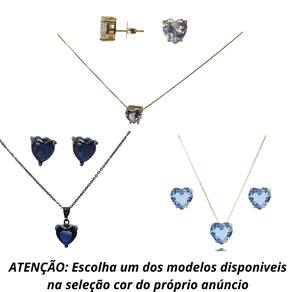 Conjunto Brinco e Colar Coração Cristal Aquamarine - Cor: Prata Pedra Azul