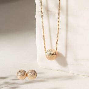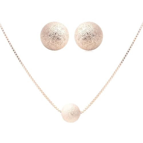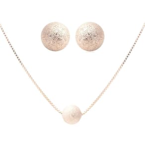Conjunto composto de um colar, na corrente veneziana, com pingente fixo de esfera e um par de brincos.
