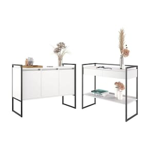 Conjunto Buffet E Aparador Industrial Branco O Buffet e Aparador veio para compor sua sala ou cozinha com seu charme industrial para a renovação do seu ambiente bonito e moderno. BUFFET em MDP PERFEX 15mm com acabamento Bordas em ABS, Tampo Superior,