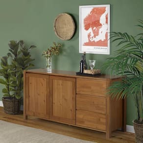 O Buffet Madeira Maciça Primavera é um móvel contemporâneo que vai te auxiliar no armazenamento de vários itens da sua sala de jantar. Esse Buffet de pinus com acabamento em verniz possui 4 gavetas com corrediça telescópica e 2 portas de bater com vidro. As medidas principais desse produto são (A x L x P): 80,5cm x 162cm x 45cm. A Cristaleira Madeira Maciça Primavera MadeiraMadeira é um item indispensável na sua sala de jantar. Guarde suas louças, pratos e outros utensílios num móvel bonito e decorativo. Ela é feita de pinus, com acabamento em verniz, com 2 portas de bater com corrediça em aço, com uma das portas em vidro. As medidas principais desse produto são (A x L x P): 194cm x 60cm x 45cm. Depois conte pra gente como ficou seu ambiente nos comentários. Acabamento: Pintura UV Acabamento: Pintura UV Material Principal: Madeira Maciça Material Principal: Madeira Maciça Possui Portas: 02 Possui Rodízio: Não