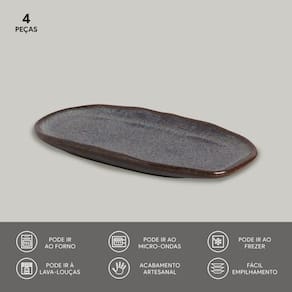 Conjunto c/ 4 Travessas Oval Rasa Pequena Orgânico Titanium 23x11cm
