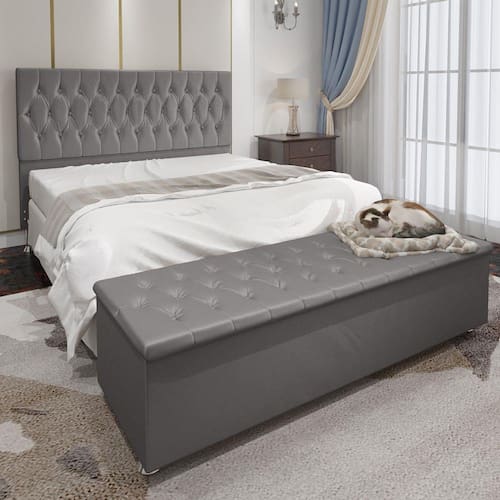O Conjunto de cabeceira e recamier báu vai deixar tudo mais bonito e arrumado, uma combinação perfeito para seu quarto!