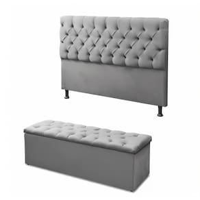 A cabeceira possui estrutura resistente e estofamento macio, oferecendo apoio confortável para leitura ou momentos de descanso. Já a calçadeira, além de complementar o visual do quarto, conta com função baú — perfeita para armazenar roupas de cama, travesseiros ou objetos pessoais, otimizando o espaço com praticidade.