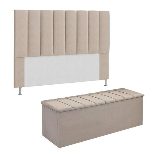 Conjunto Cabeceira E Calçadeira Cancun Para Cama Box Queen 160 cm Suede Bege - LM DECOR