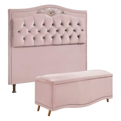 Conjunto Cabeceira E Calçadeira Holanda 195 Cm Luxor Rose Speciale Home Rose