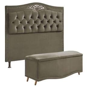 Conjunto Cabeceira e Calçadeira Holanda 1,95 cm Veludo Star Confort - Marrom Cacau