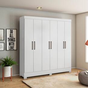 Possui 6 portas e 3 gavetas, todas com corrediças telescópicas e profundidade adequada para roupas e sapatos