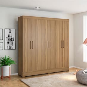 Possui 6 portas e 3 gavetas, todas com corrediças telescópicas e profundidade adequada para roupas e sapatos
